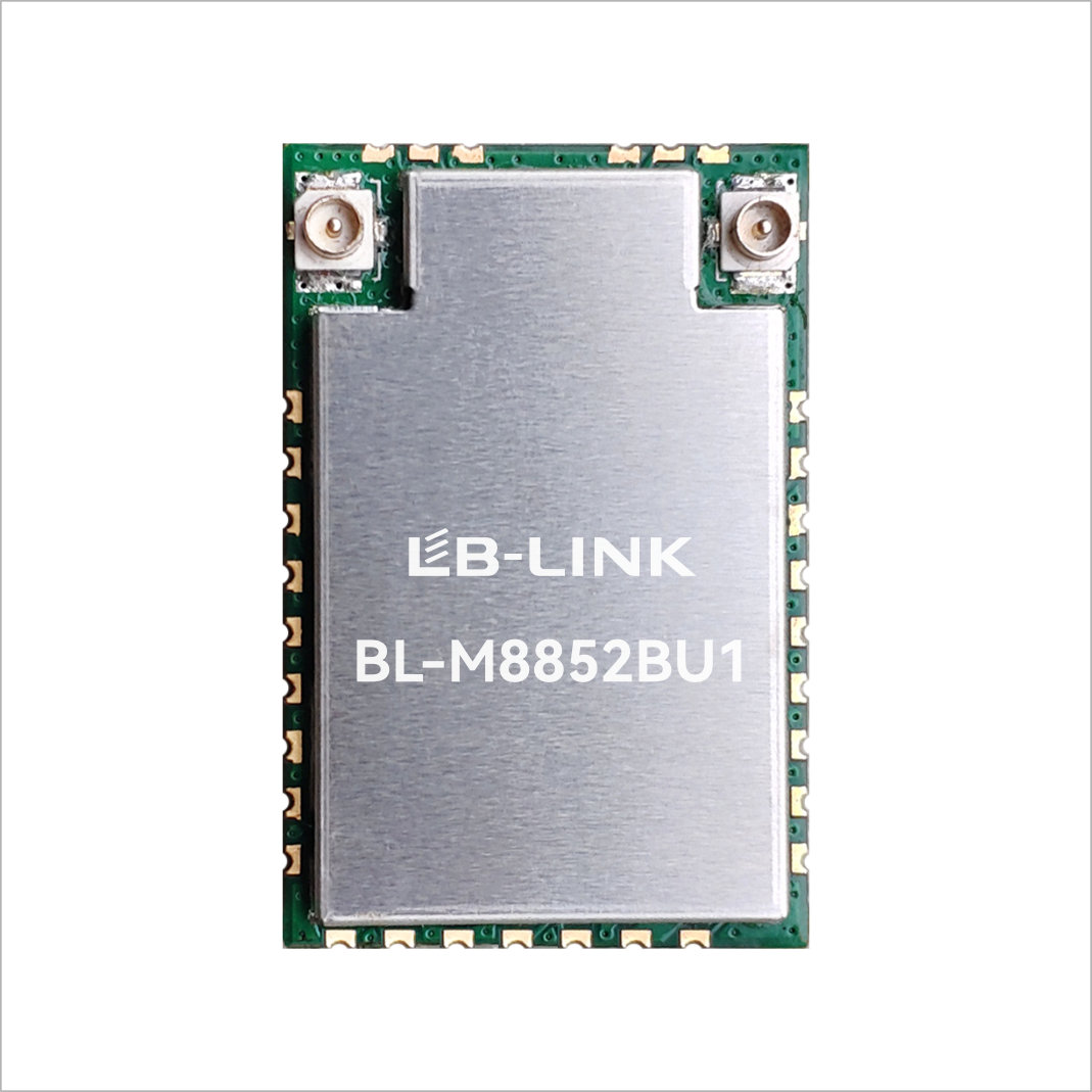 BL-M8852BU1 เป็นโมดูล WLAN + Bluetooth v5.2 Combo แบบดูอัลแบนด์ที่มีการบูรณาการสูง ประกอบด้วยระบบย่อย WLAN Dual-band 2T2R และระบบย่อย Bluetooth v5.2 โมดูลนี้เข้ากันได้กับมาตรฐาน IEEE 802.11 a/b/g/n/ac/ax และให้อัตรา PHY สูงสุดถึง 1201Mbps รองรับ Bluetooth โหมดคู่ที่เป็นไปตามข้อกำหนด v5.2/v4.2/v2.1 ให้การเชื่อมต่อไร้สายที่มีคุณสมบัติหลากหลายในมาตรฐานระดับสูง และให้ปริมาณงานที่เชื่อถือได้ คุ้มค่า และมีปริมาณงานสูงจากระยะไกลที่ขยาย